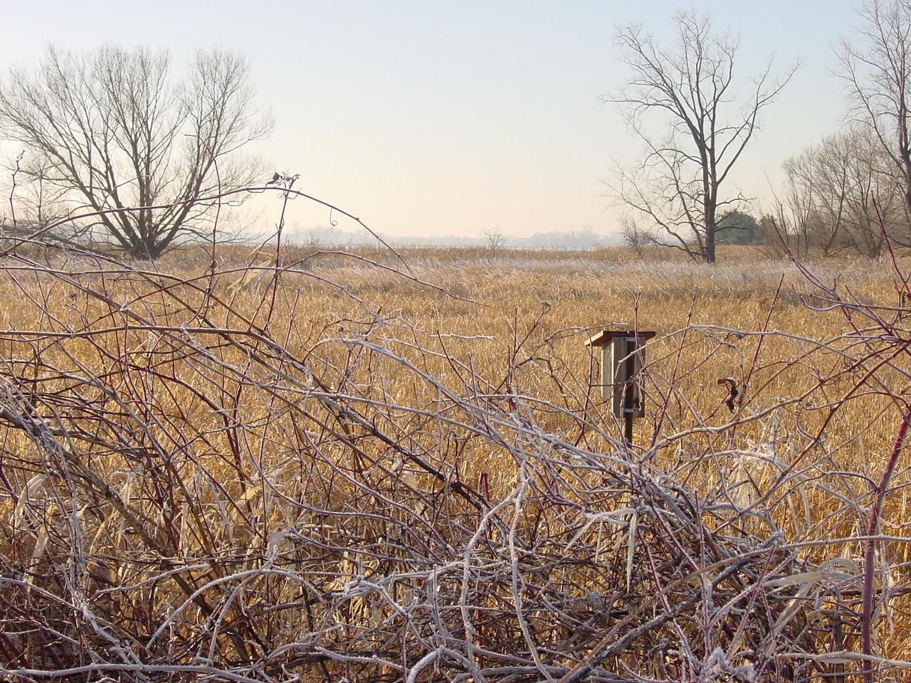At the time, the breakwall was likely the largest ever constructed in North America for the specific purpose of habitat restoration. In addition to the breakwall, six islands, one-third of an acre each, were also constructed within the enclosure. The islands were seeded with prairie grasses to attract nesting waterfowl such as mallards and blue-winged teal. A navigable carp barrier was also installed at the single, 66-foot wide opening along the north side of the breakwall to prevent adult carp from entering the restoration area. Carp are non-native bottom feeders. In high densities they can decimate rooted aquatic plants, and significantly reduce water clarity through their feeding activities.